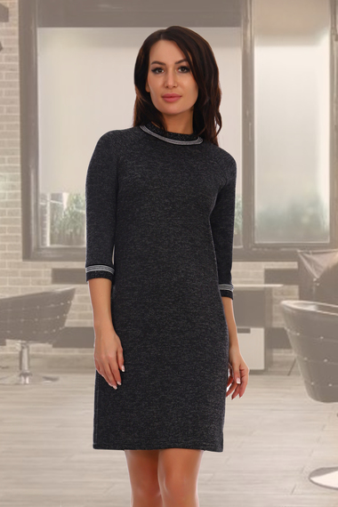 Фото товара 15775, черное трикотажное платье с длинным рукавом