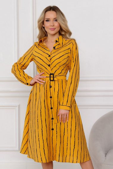 Фото товара 22338, желтое платье-рубашка в полоску